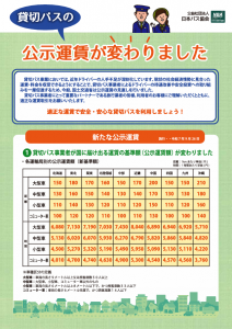 下記の通り一般貸切旅客自動車運送事業における運賃・料金及びその適用方法の